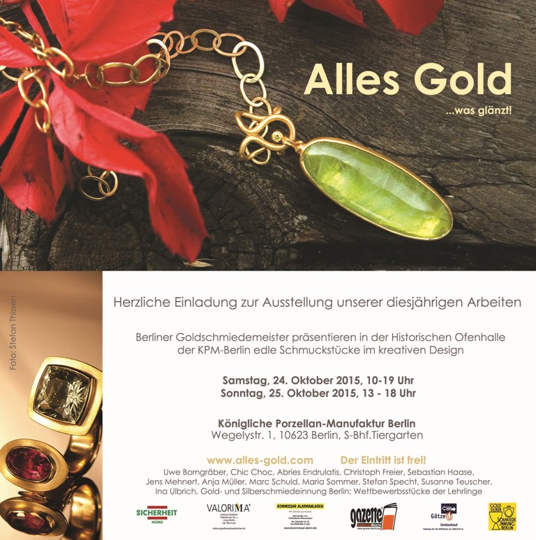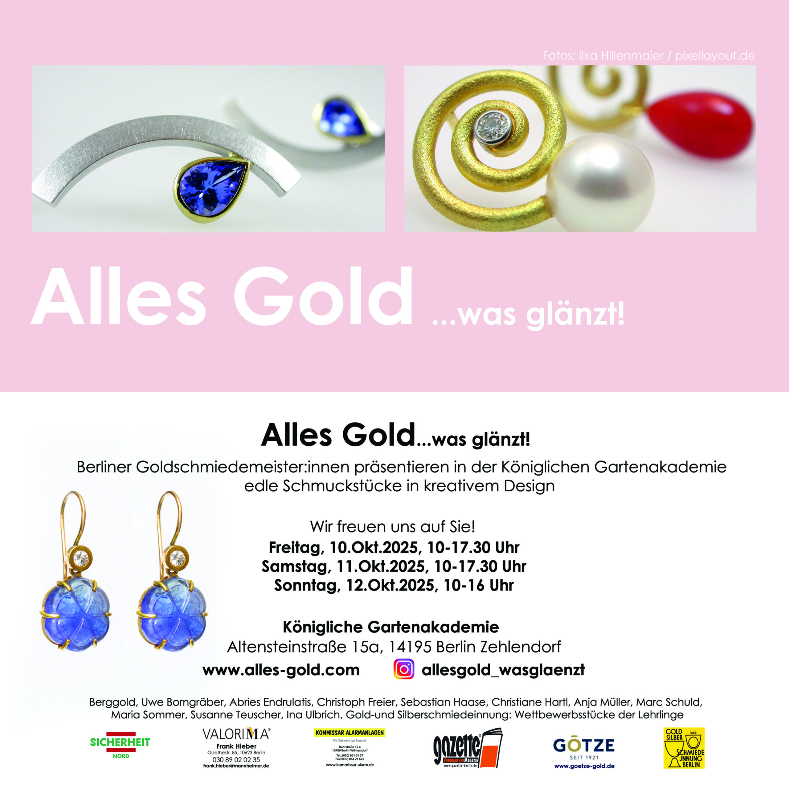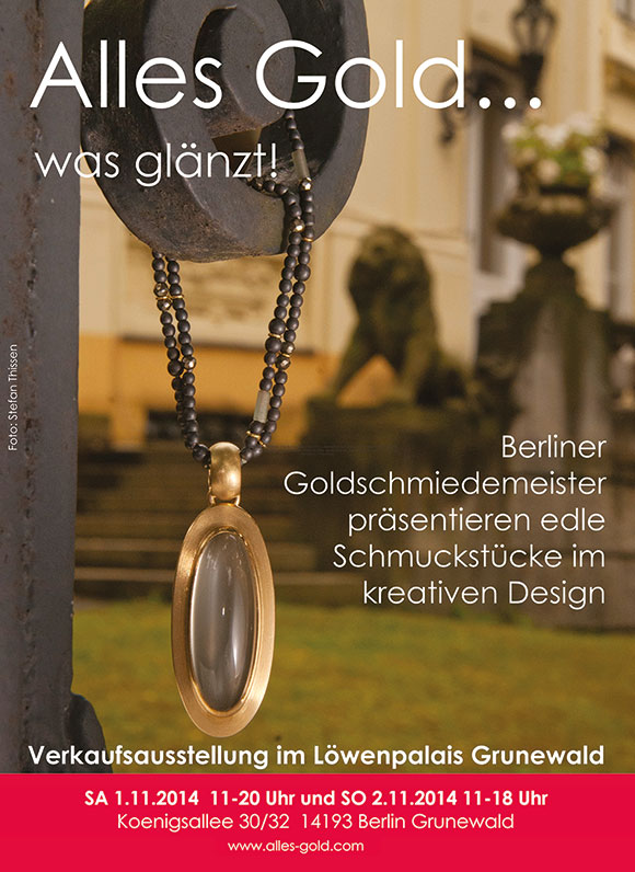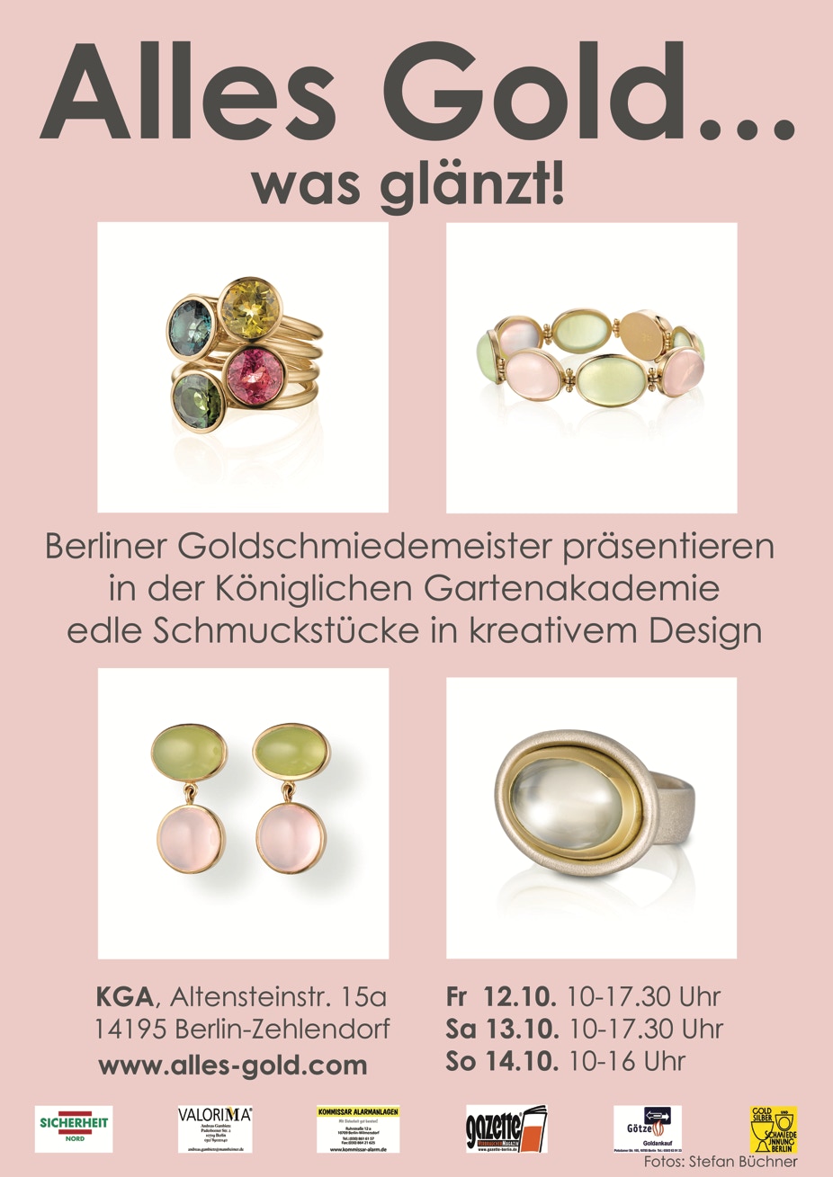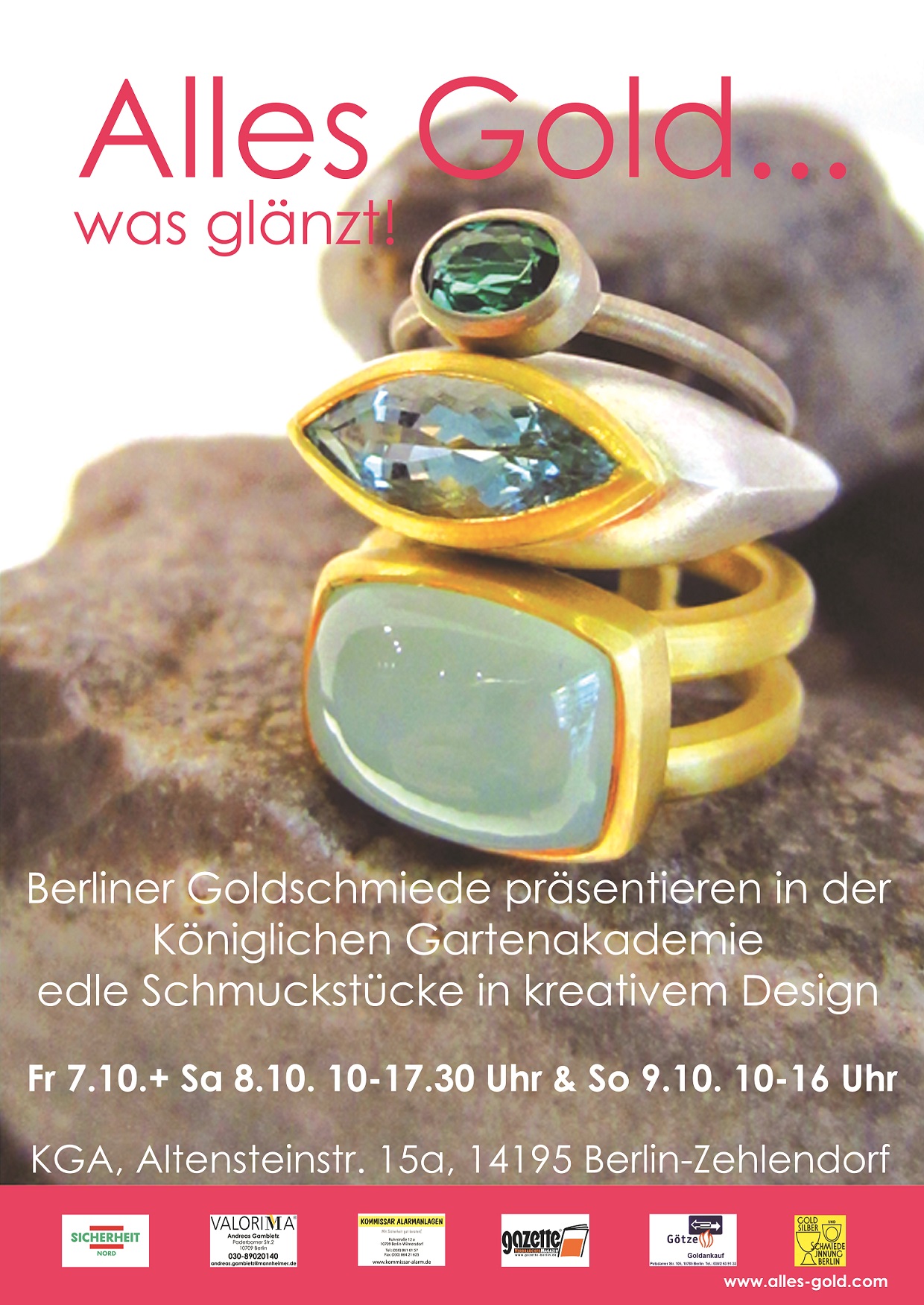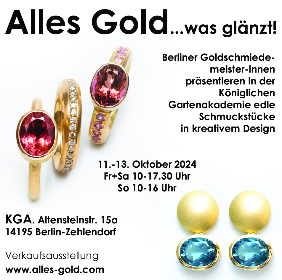Wir freuen uns auf Ihren Besuch in der königlichen Gartenakademie in Zehlendorf zu unserer Goldschmiedeausstellung im Oktober.