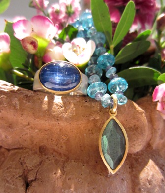 Safir-Apatitkette mit einem Labradoritgoldanhänger