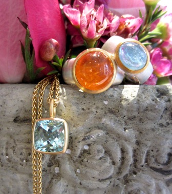 Gold-Silberringe mit einem Mandaringranat und einem Aquamarin